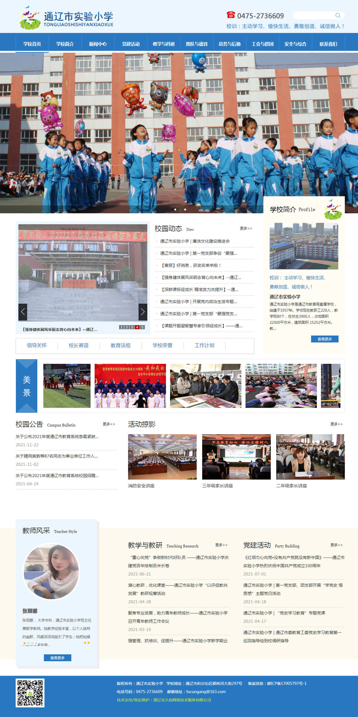 通遼市實(shí)驗(yàn)小學(xué)是通遼市教育局直屬學(xué)校,始建于1957年。學(xué)?,F(xiàn)在教職工220人,教學(xué)班80個(gè),在校生3900人,占地面積22500平方米,建筑面積 15252平方米。教師隊(duì)伍中具有大專以上學(xué)歷的195人。具有研究生碩士學(xué)位畢業(yè)的9人,小學(xué)特級(jí)教師4人,高級(jí)教師57人,小學(xué)高級(jí)教師70人,小學(xué)一級(jí)教師87人。